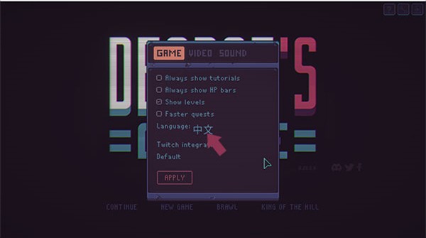 3、然后点击Language选项将其更改为中文,并点击下方Apply即可将语言切换为中文。