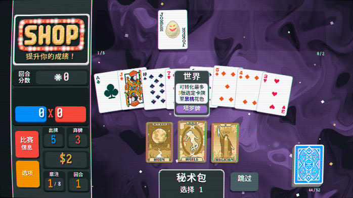 1.玩家们将参与游戏,并找到那张能够扭转局势的“小丑”牌。一张出色的牌与一张独特的“小丑”牌相结合,能够产生不同的协同效果,使你能够获得更多的筹码。