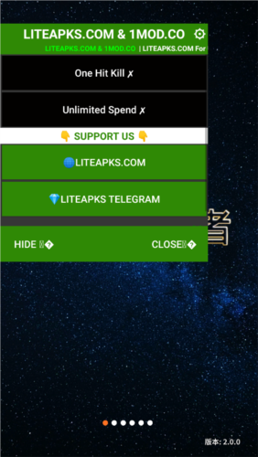 5、点击左上角绿色图标,这里可以开启内置破解功能,包括一击必杀、消耗品数量不减少等。