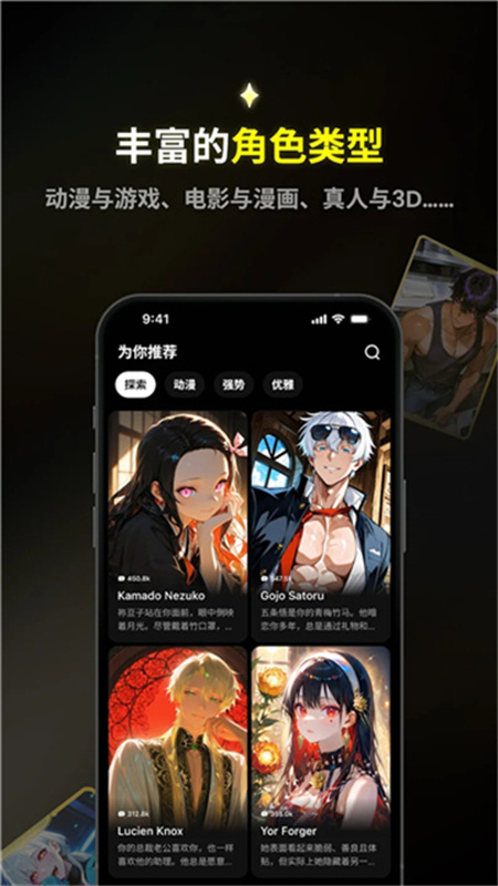 1、多话题聊天:用户可以与AI就各种感兴趣的话题进行对话,如动画、漫画和游戏。