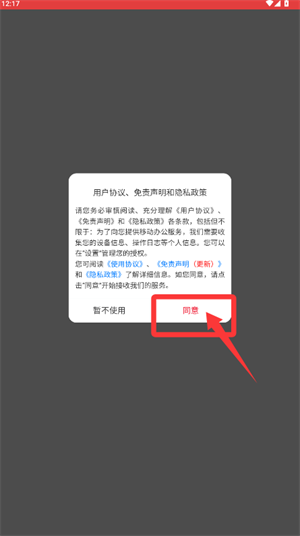 1、首次启动需阅读并同意相关协议政策,点击进入应用。