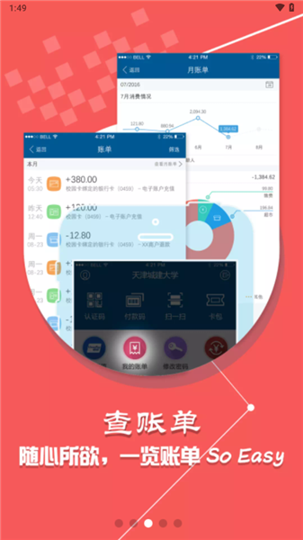 【校园支付】 包括学费、电费、网络费用、补课费、成绩考试费、党费和组织费、培训费以及学费等项目的支付。